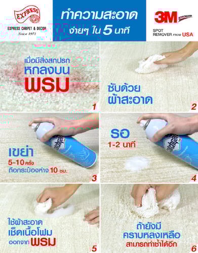 เป็นสเปรย์โฟมของ 3M แท้ ทำความสะอาดพรม หรือผ้าบุ เฉพาะจุด ใช้ทำความสะอาดรอยเปื้อนและคราบสกปรกบนพรม ใช้ง่าย สะอาด ปลอดภัย ใช้เวลาเพียง 10-15 นาทีเท่านั้น สเปรย์โฟม 3M 1กระป๋องใช้ได้หลายครั้ง