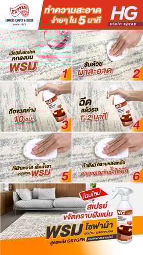 HG ของแท้ พร้อมส่ง สเปรย์ทำความสะอาดพรมและผ้าบุเฟอร์นิเจอร์ ขวดใหญ่ 500 มล.