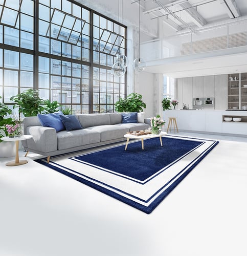 #พรมไซส์ L1 #พรมสไตล์โมเดิร์น #พรมขนสั้น - สไตล์โมเดิร์น #พรมทอมือ #พรมรุ่น GEO FRAME #200x290 ซม. #สินค้าพรีออเดอร์ #พรมสีน้ำเงิน