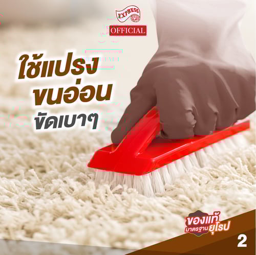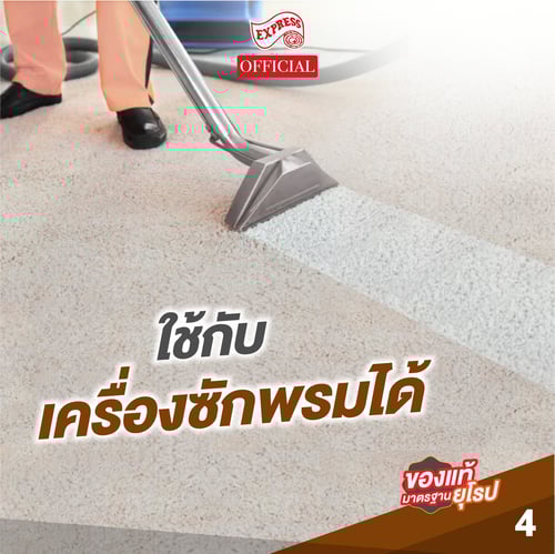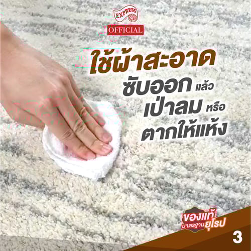• ทดลองใช้กับพื้นที่เล็กๆก่อน หากสีของพรมเปลี่ยน ให้งดใช้