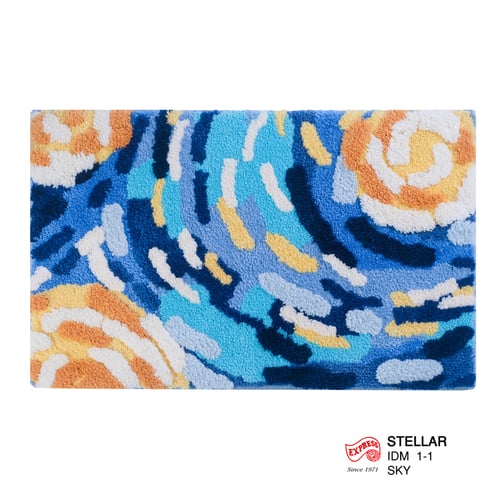 - พรมที่ได้รับแรงบันดาลใจจาก ท้องฟ้ายามค่ำคืน ผสานลวดลายหมุนวนที่ชวนให้นึกถึง เสน่ห์ของดวงดาวและสายลม โทนสีฟ้า-ทองช่วยเติมพลังและสร้างมิติให้กับทุกพื้นที่ พร้อมมอบสัมผัสนุ่มสบายและบรรยากาศอบอุ่นในทุกย่างก้าว