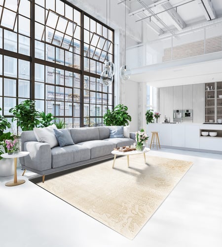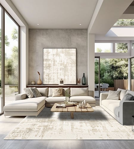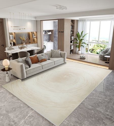 พรมขนสั้นหนา 11 มม. พรมนำเข้าสไตล์แอ็บสแทรกซ์ผลิตจาก PP และ PE ในโทนสีครีม