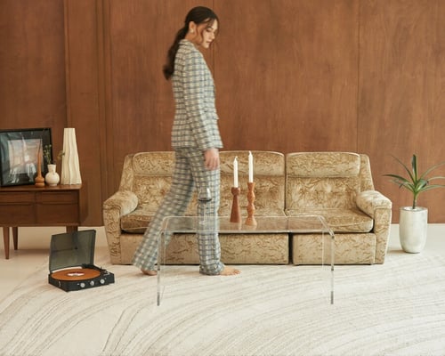The loosely woven 14mm pile construction, smoothly blending a refined microfiber PE yarn and a smart shrink PE yarn, adds liveliness to every room. The Wave collection offers a range of super soft 3D surface rugs, featuring twirly patterns in lovely neutral colours.